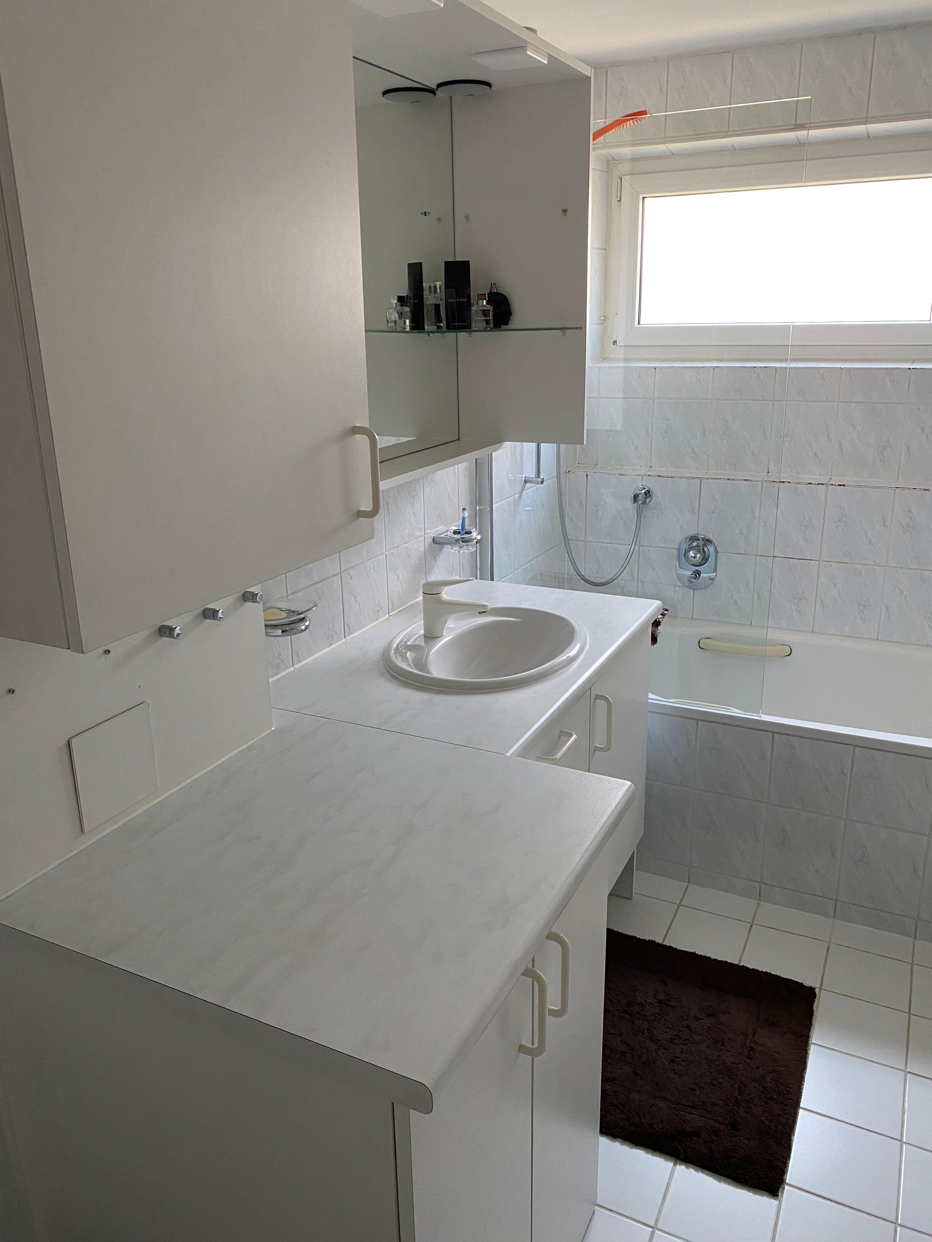 - Ausstattung des Bades Fenster, Badewanne